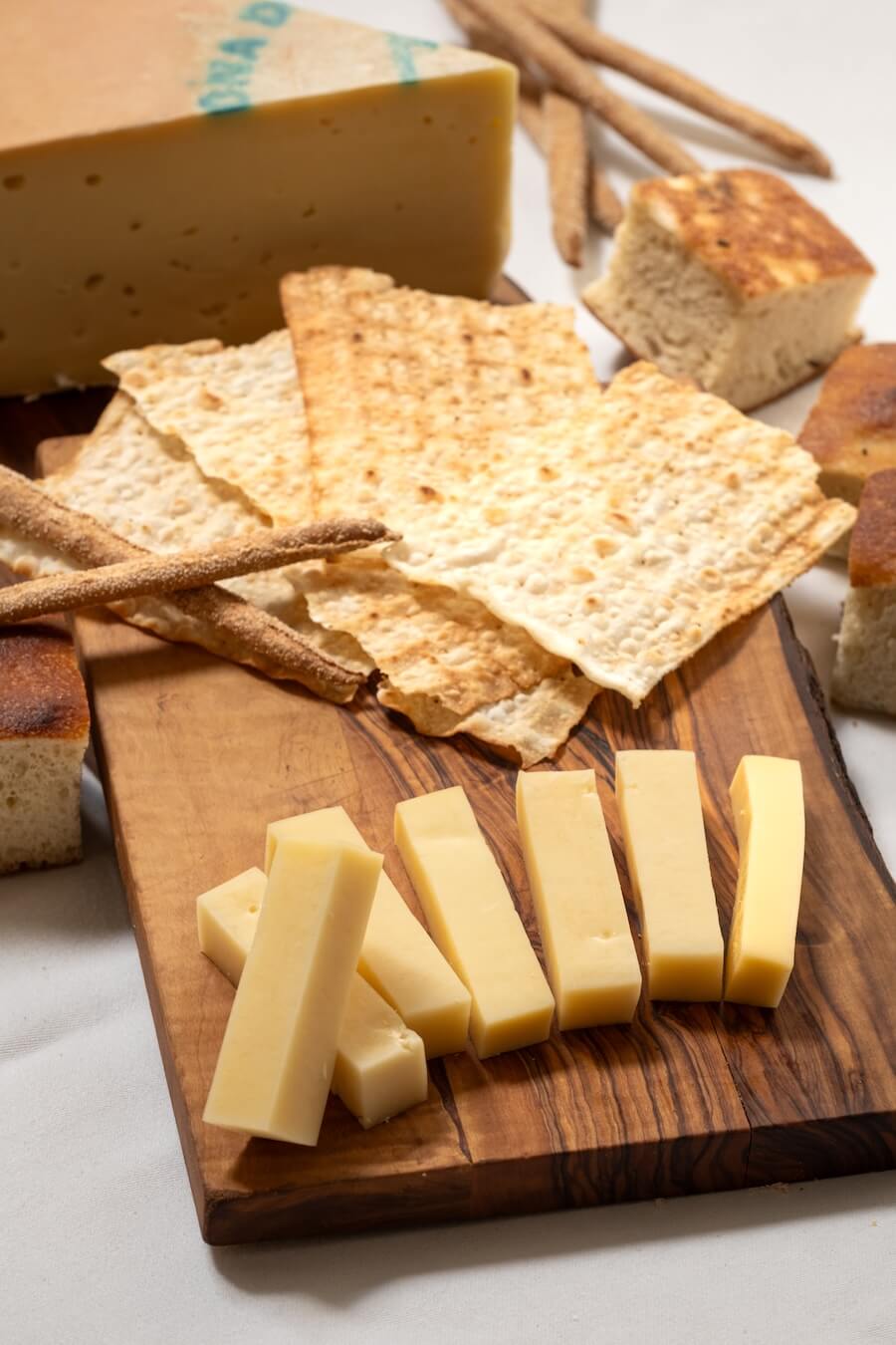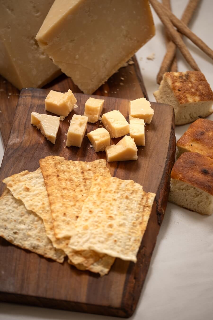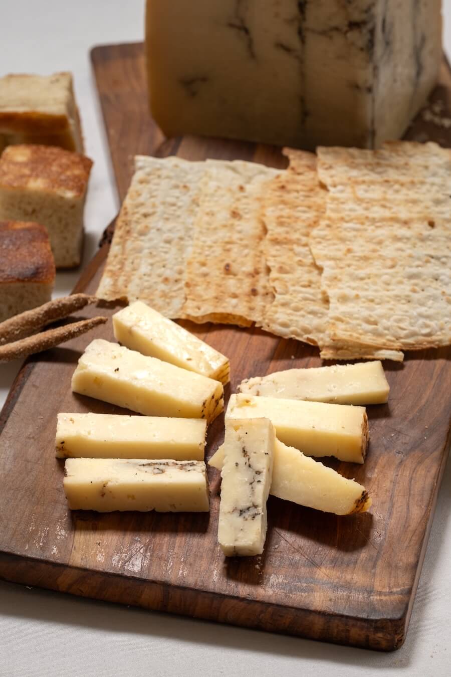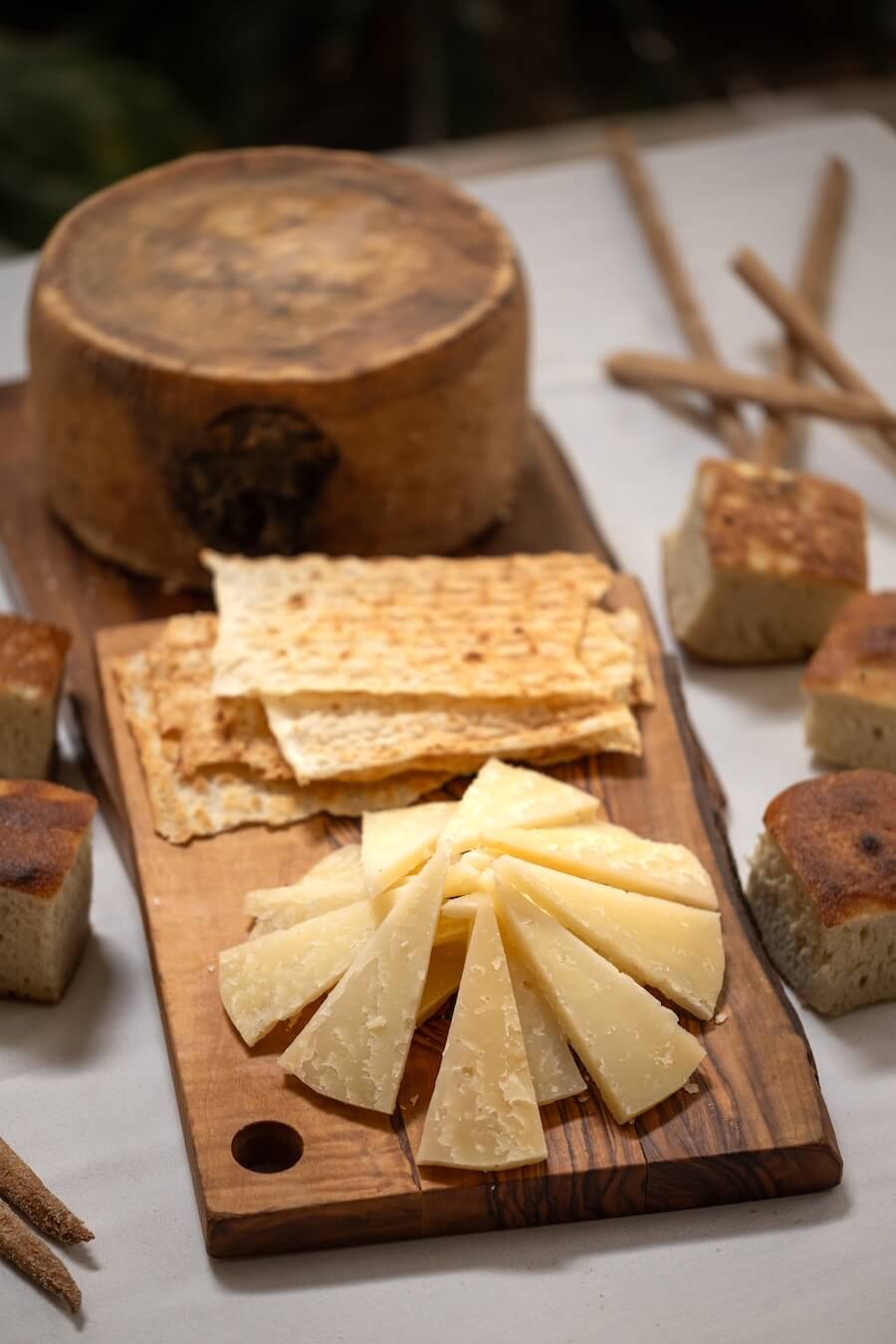 Sabor forte e salgado, textura firme e quebradiça, com notas de nozes e um leve toque picante