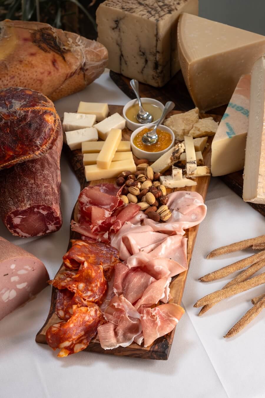 Tábua de variedades de queijos, enchidos Italianos, frutos secos, mel e marmelada, escolhida pelo Chef (para 2 ou 4 pessoas)